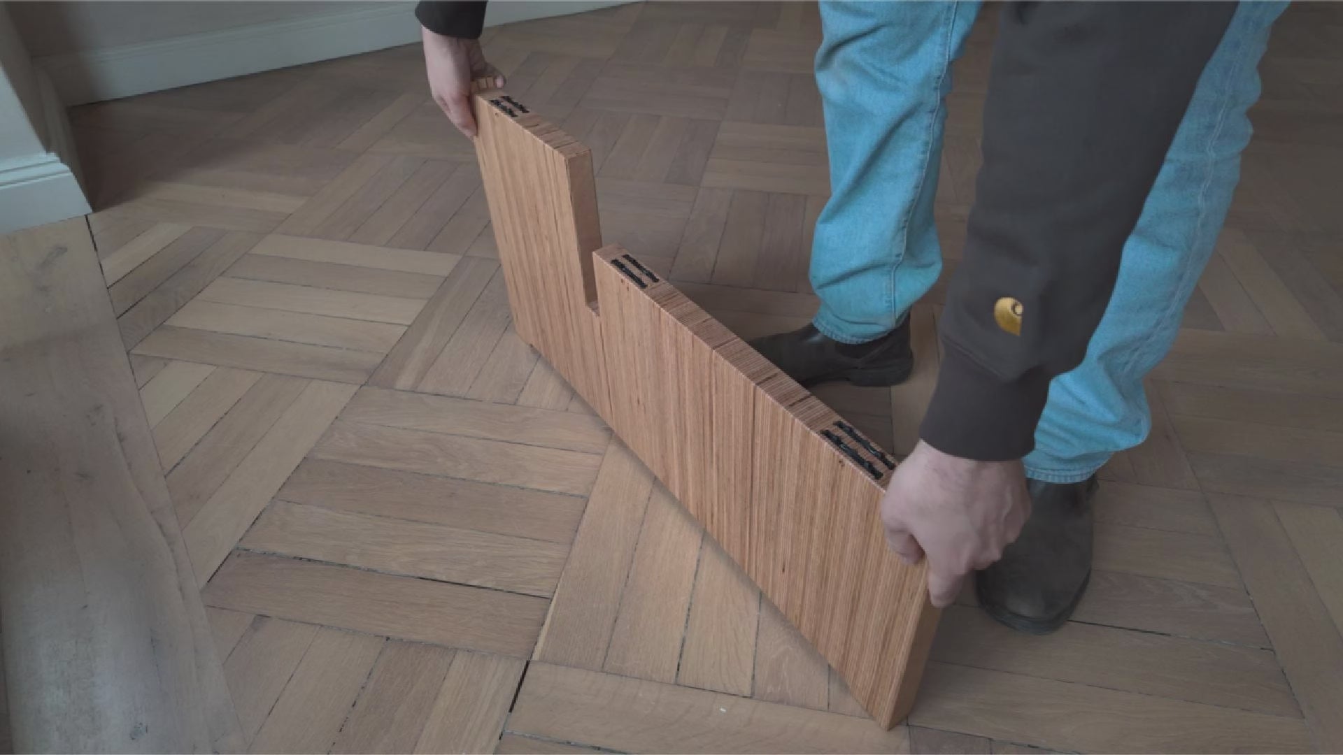 BauBuche Paneel ist ein aus mehreren miteinander verleimten Furnierschichten aufgebautes Buchenholzmaterial. Die Oberfläche ist geschliffen und geölt, um das Holz zu schützen und die Maserung hervorzuheben.