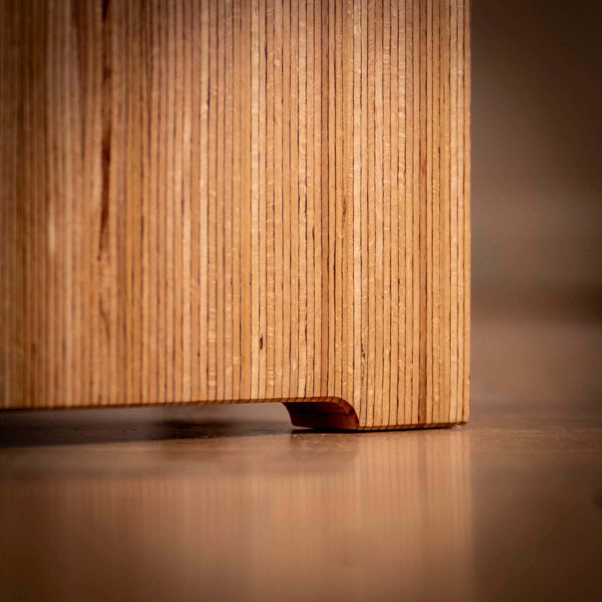 BauBuche Paneel ist ein aus mehreren miteinander verleimten Furnierschichten aufgebautes Buchenholzmaterial. Die Oberfläche ist geschliffen und geölt, um das Holz zu schützen und die Maserung hervorzuheben.